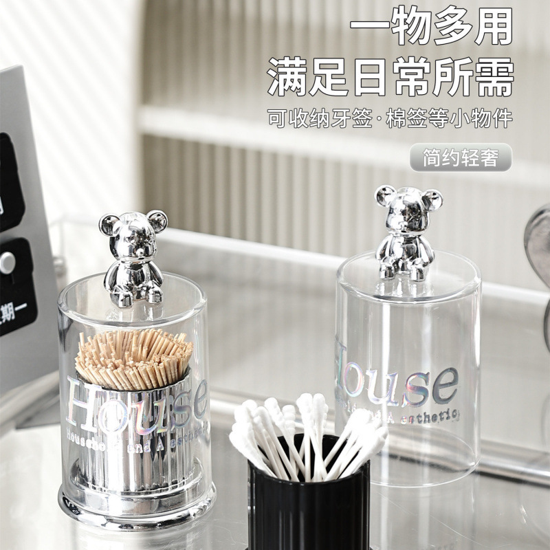 軽豪華高颜値かわいいベアー創意楊枝筒楊枝箱収納綿棒筒綿棒缶楊枝箱家庭用