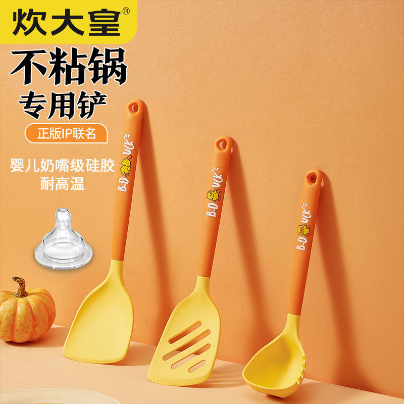 炊事大皇小黄鴨シリカゲルシャベル乳児補助食シリカゲルシャベルスプーン耐高温シリカゲルスプーン漏れスプーンセット鍋シャベル