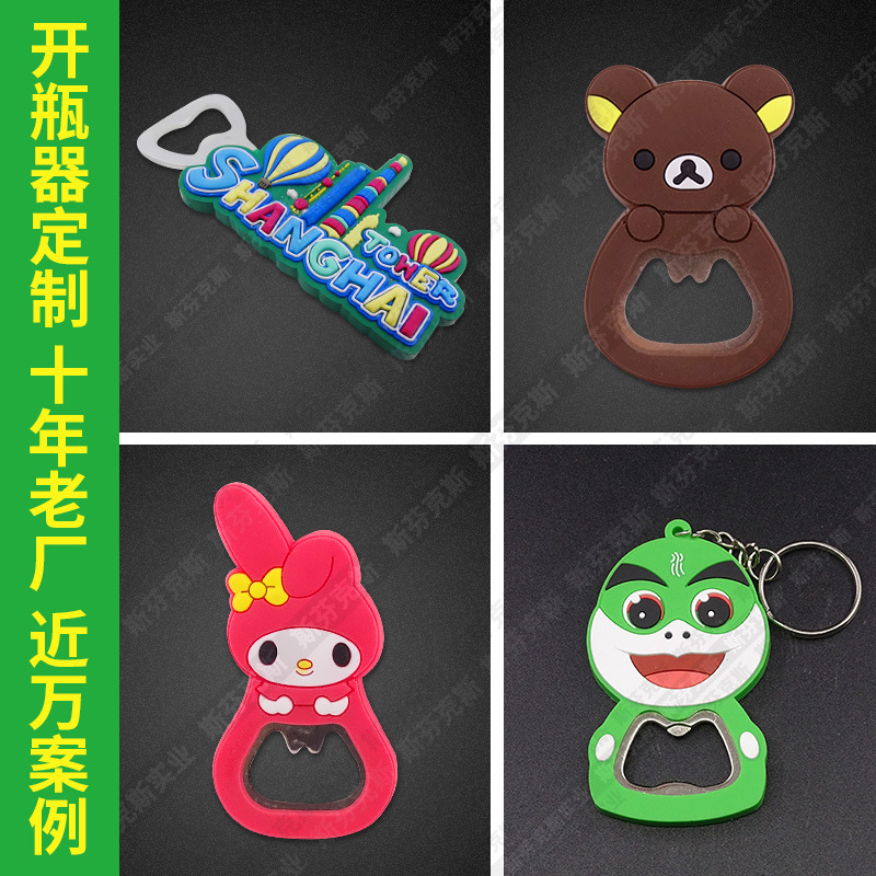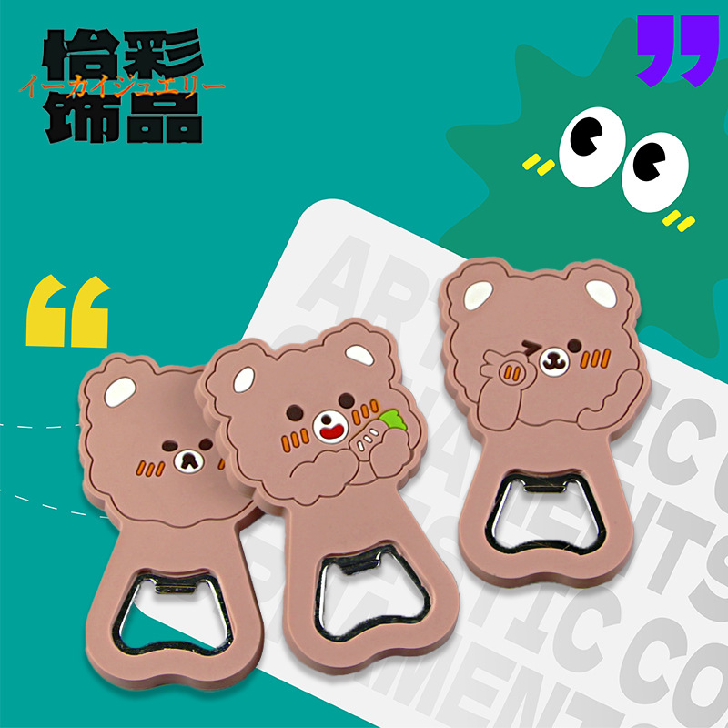 漫画熊公仔栓抜き器設計多機能押しPVCソフト異形立体磁気吸引ビール栓抜き器