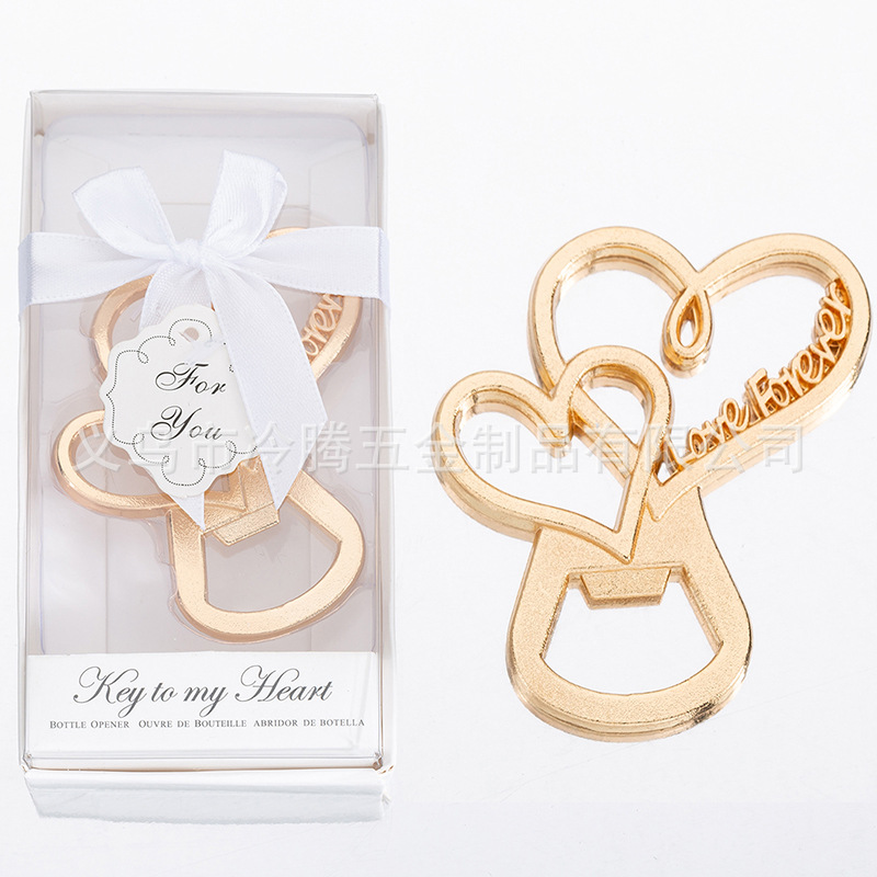欧米の小さい贈り物の双心の栓抜き器の結婚祝いのお返しの小さい贈り物のアイデアの合金の愛の桃の心の栓抜き器