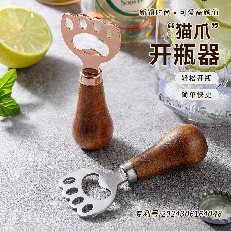 ビール栓抜き家庭用アカシア木製クリエイティブ猫爪縦型かわいい蓋切り器ストラップ携帯栓抜き