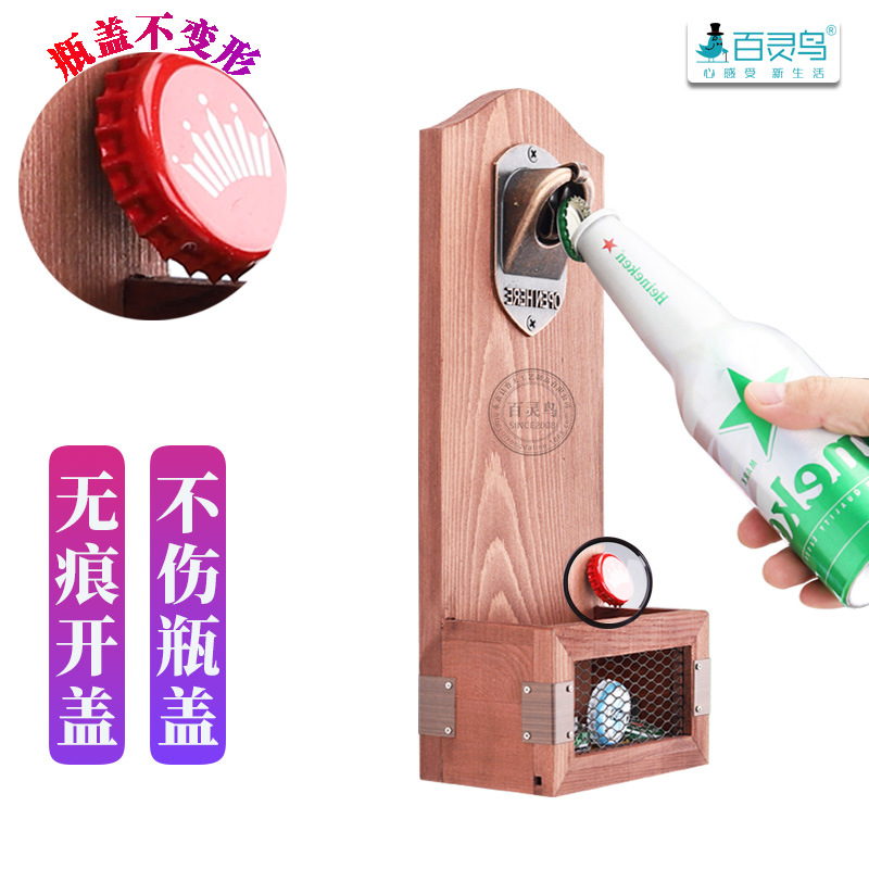 国境を越えたビールドライバー創造鋳鉄栓抜き器木製収納ケースレトロ屋外壁壁掛け無痕栓抜き器