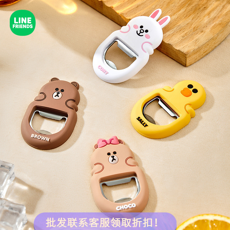 LINE FRIENDSビールの栓抜き冷蔵庫に多機能マグネット缶開け器漫画ステンレス製の栓抜きを貼っています。
