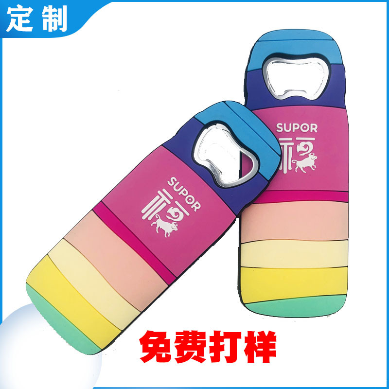 メーカー磁性pvcソフトボトルオープナー創意ブランドのプラスチック冷蔵庫に缶を開ける器を貼る