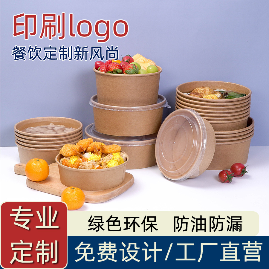 越境使い捨て紙ボウルクラフト紙弁当箱丸型厚手硬質テイクアウト包装箱印刷卸売