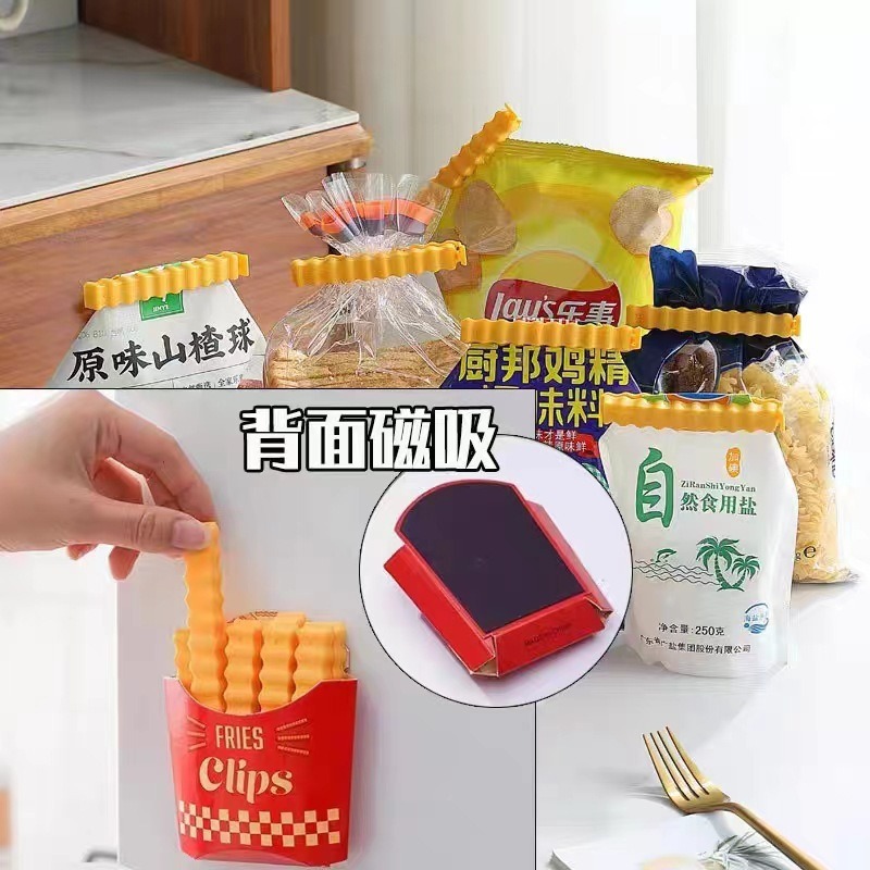 フライドポテトシールクリップ食品クリップ冷蔵庫スナック防湿鮮度保持保管プラスチック磁気吸引デュアル目的家庭用シールクリップ