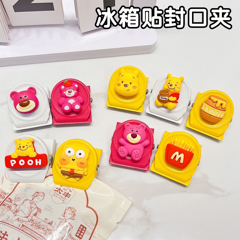 食品シールクリップ冷蔵庫マグネットステッカー写真クリップ多機能かわいい漫画スナックビニール袋シールクリップ