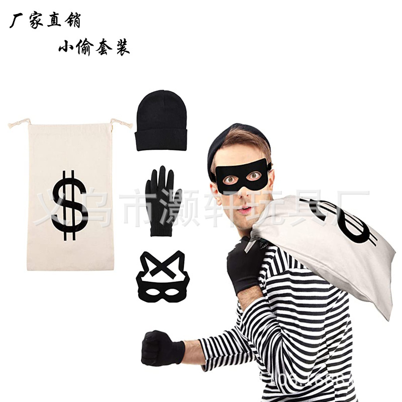 男泥棒コスプレアイテムストライプカットソーゾロアイマスクニット手袋帽子キャンバス銭袋セット