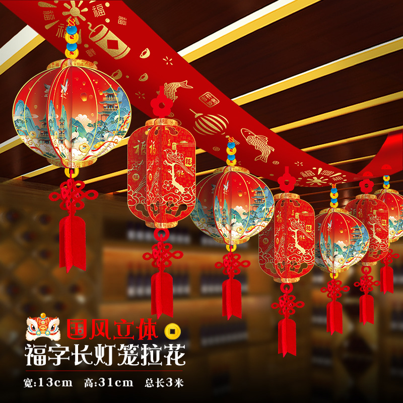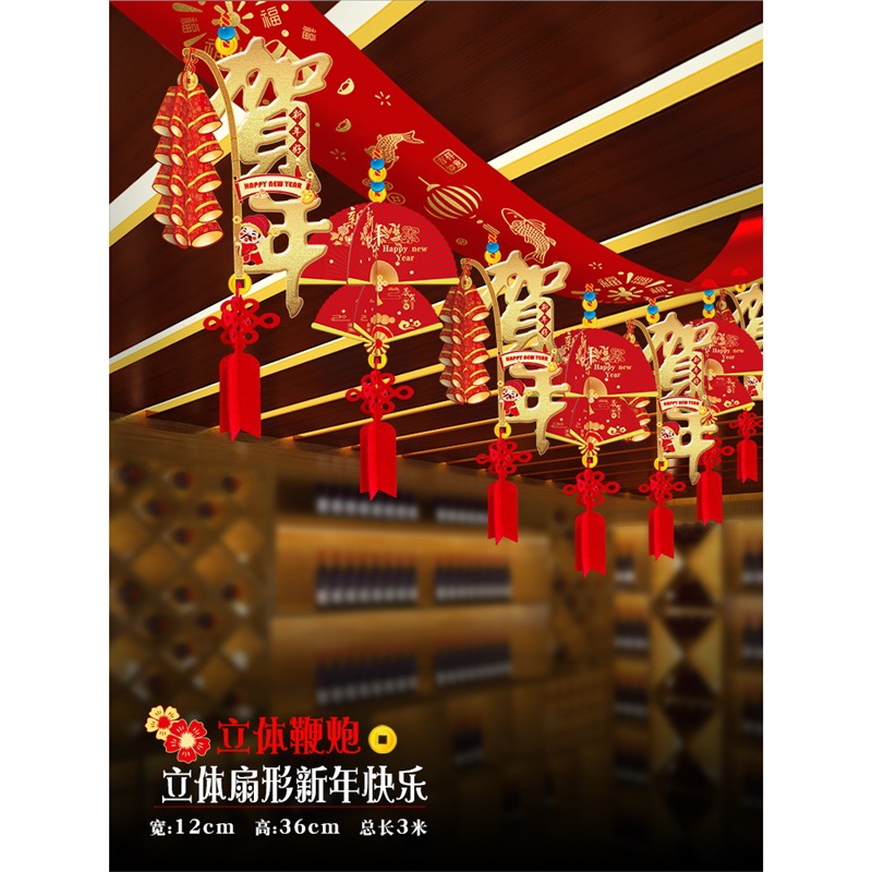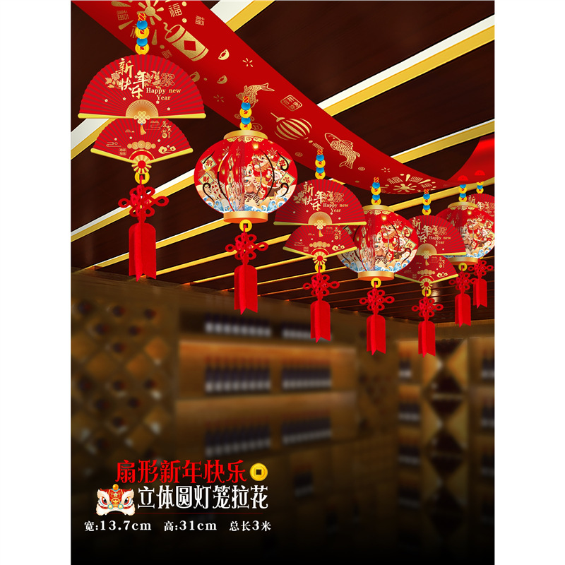 2024年新年開門紅職場配置花飾り元旦旧正月店開業新年吊り下げリボン