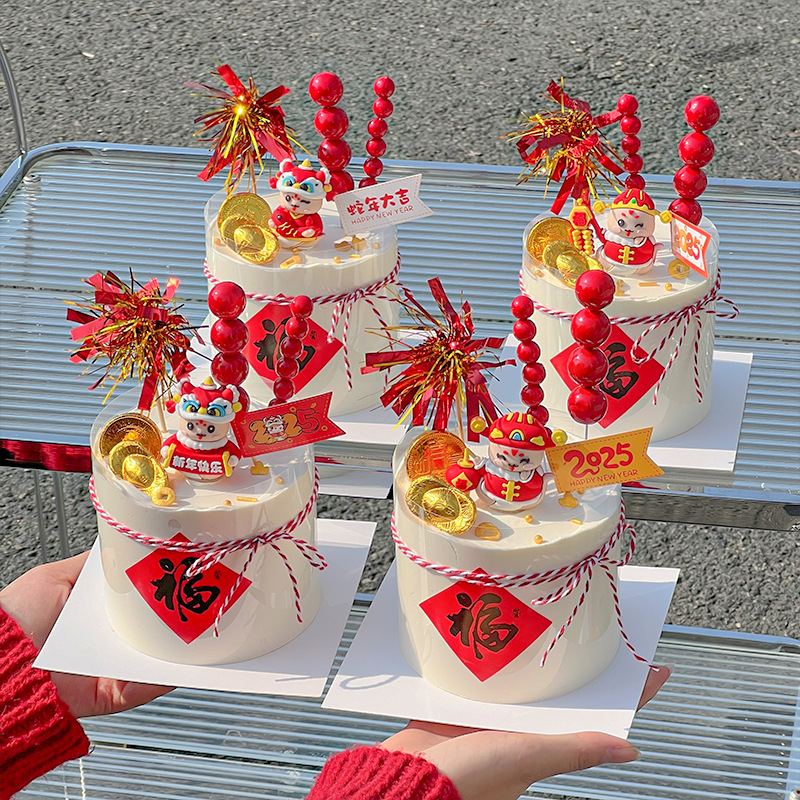 2025年新年弁当箱ケーキ装飾年余挿旗元旦年越し旧正月スイーツ装飾プラグイン