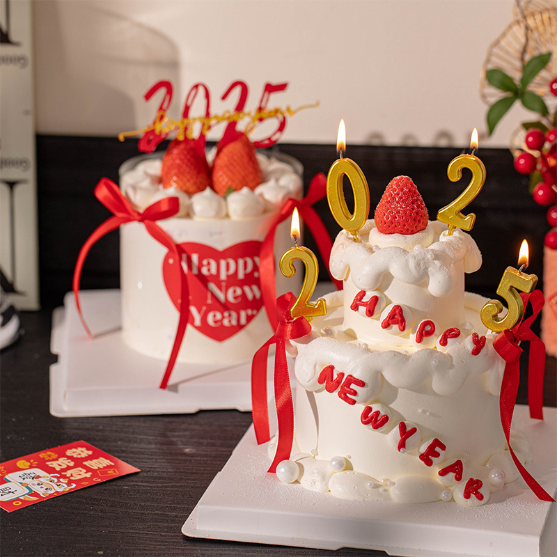 2025年新年キャンドルケーキ装飾アクリルカード元旦旧正月年越しパーティー愛シールプラグイン