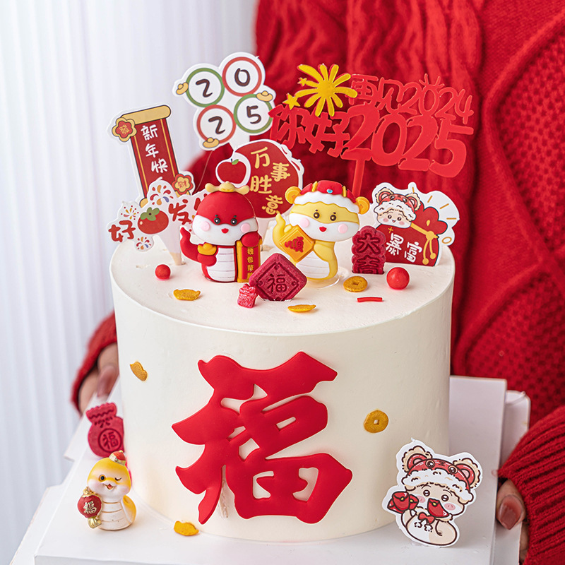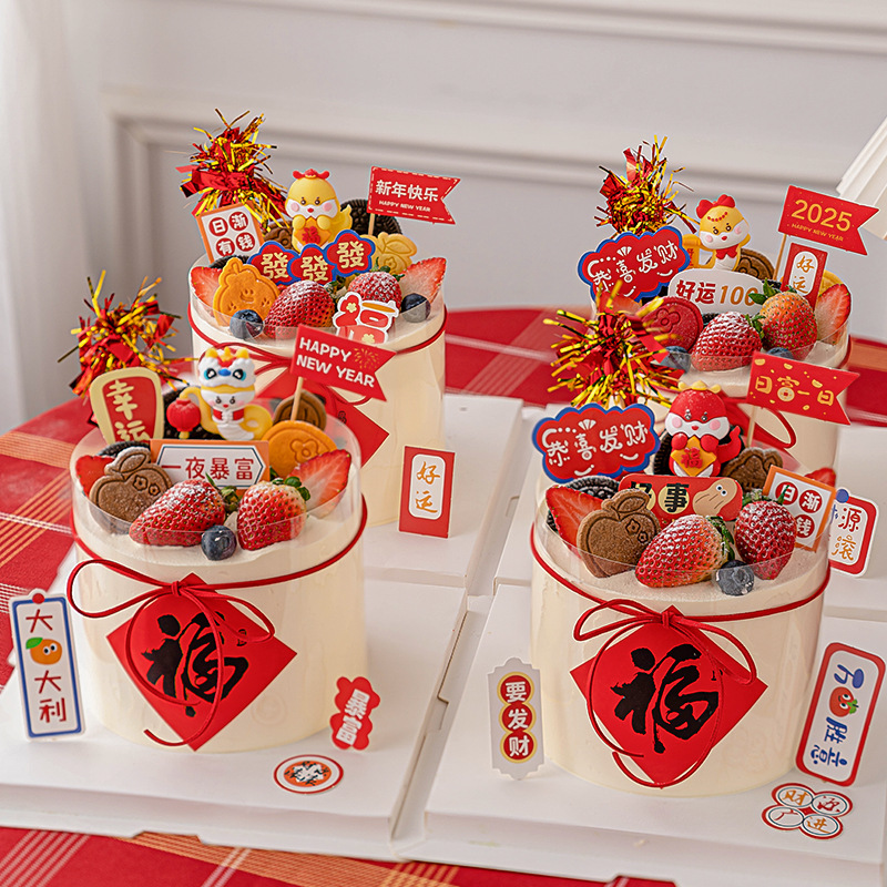 2025年新年福字シールケーキ装飾おめでとうございます。