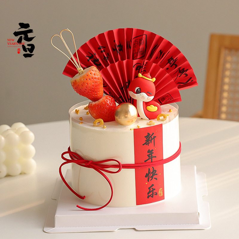 2025年新年ケーキ装飾元宝小蛇置物順風順水順財神からカード福字シールのプラグイン