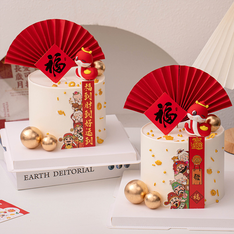 2025新年おめでとう蛇年大吉ケーキ装飾シール年越し国風扇子福字銅銭小蛇プラグイン