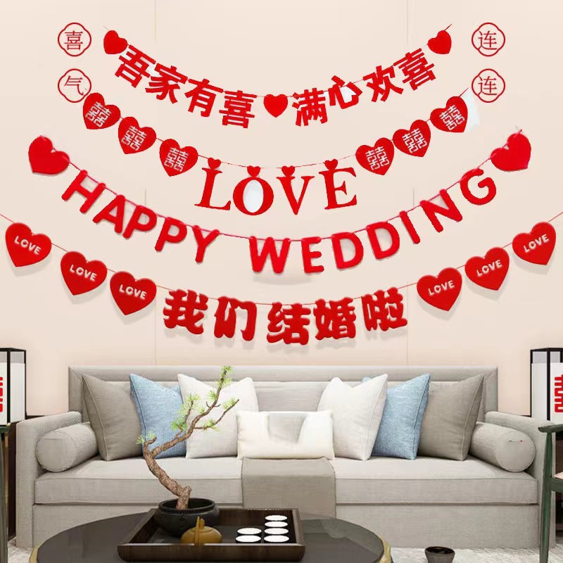 リビングルームの装飾ラテアートクリエイティブウェディング用品新しい家のウェディングハンギングセットウェディングハッピーワードウェディングルームレイアウト
