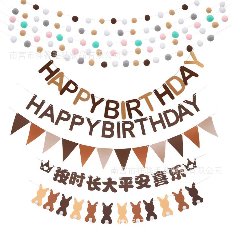 小紅書ins森系拉旗毛玉串赤ちゃんの歳の誕生日に子供パーティーの背景壁の装飾品を配置します。