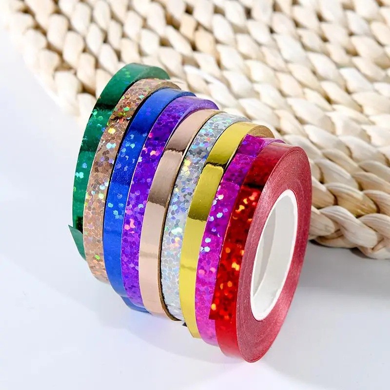 10メートルの風船リボンレーザーのリボンは誕生日の旗のリボンを持っています。