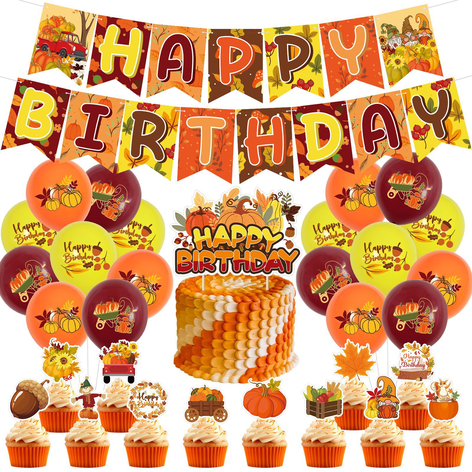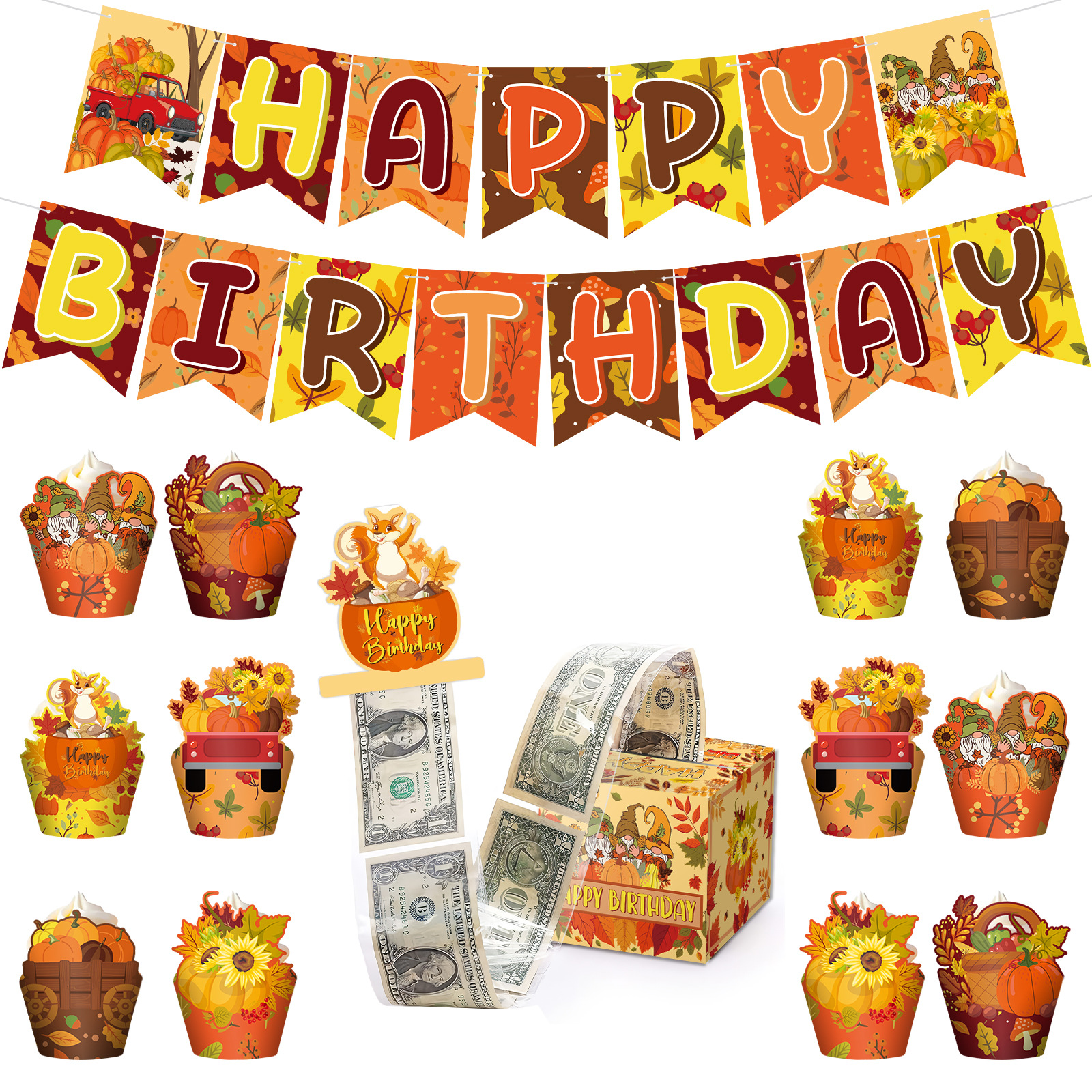 秋のテーマ誕生日パーティー装飾背景配置用品セット黄金豊作旗銭箱写真フレーム