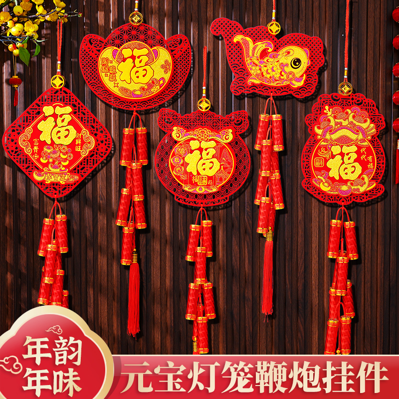 2025年新年フェルト爆竹ペンダント旧正月店テレビ背景壁シーン装飾福字掛け卸売り