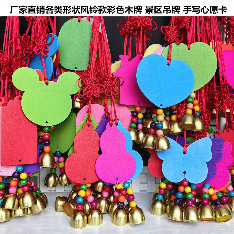 木製風鈴ウィッシングカード カラフルなウィッシングカード 吊り下げ木札 景勝地装飾木製タグ 手書きウィッシュカード