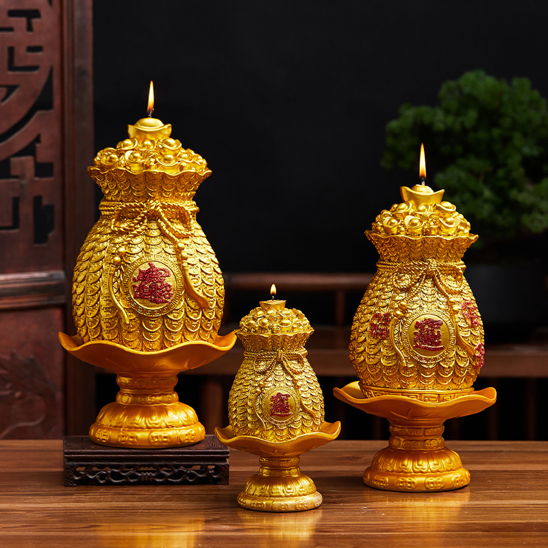 メーカー招財進宝ろうそく金元宝ろうそく集福金色銭袋創意造形工芸ろうそく