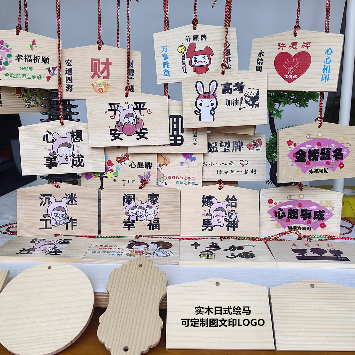 木造の吊り札と日本式の絵馬の願い事の札は木の願い事の札の観光地区の平安の札の装飾の札の手書きの願い事の札を掛けます。