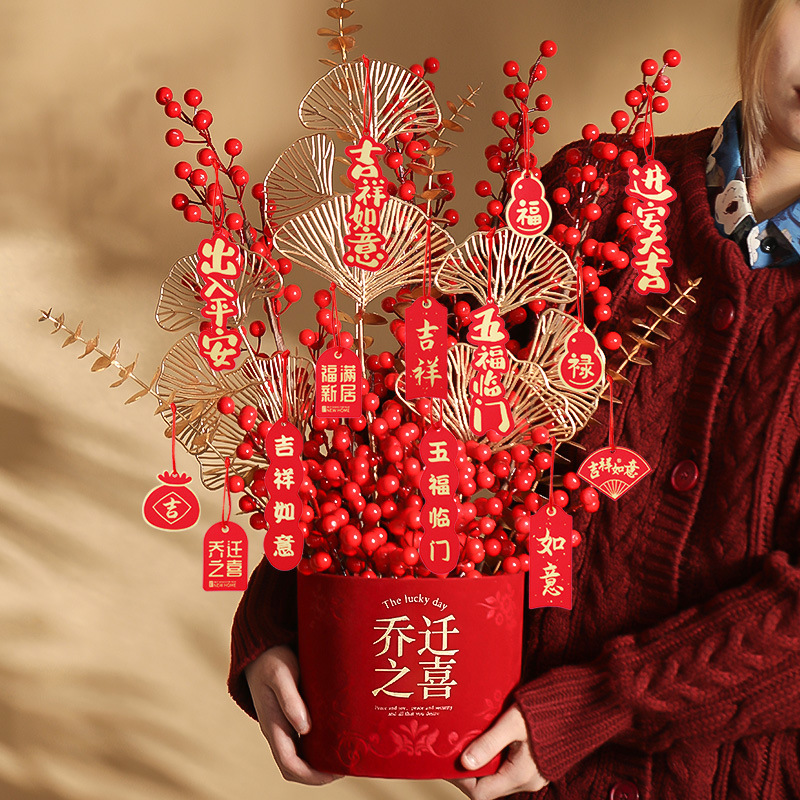 2025新型盆栽装飾ペンダント新年旧正月ジョー移転緑植盆栽木に飾られた飾り祭りの雰囲気