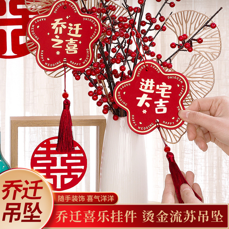 卸売りの金のペンダントカードの家庭用新年のお祝いの不織布のお祝いの年のペンダントカードの引っ越しの装飾の赤いペンダントカード
