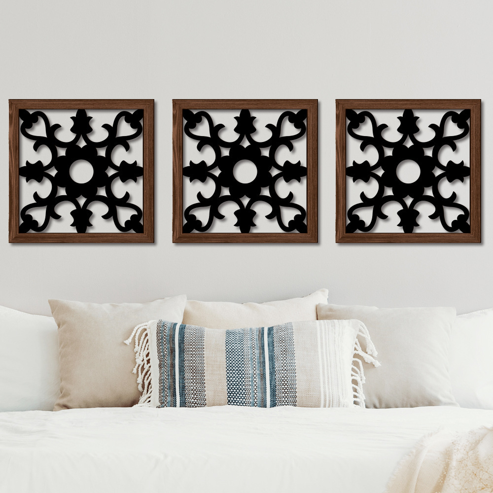 欧は立体木造の正方形に看板を掛けて、簡単に家の壁を飾って、三連の木造の掛け絵を飾ります。