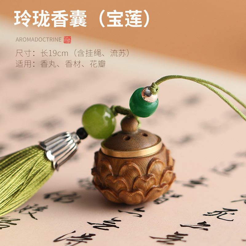 創意的な緑檀木の透かし彫りの香嚢のボールベルトのフリンジは如意の携帯電話のペンダントの車内の装飾品にぶら下がって香りを広げます。