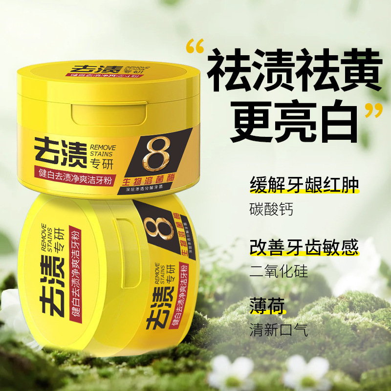 菁纯秘密黄芪牙粉亮白牙齿洗炫白牙粉益生菌牙膏去牙黄烟渍牙垢