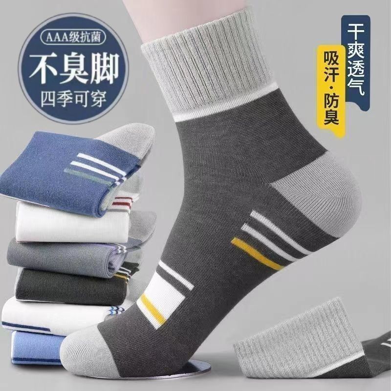 靴下の男性のストライプの耐摩耗性防臭吸汗の中筒春秋冬の足のカバーの防臭の靴下の百合の日の歯の粉の3