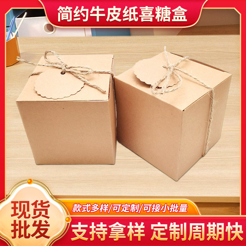 ヨーロッパ式正方形7*7*7年皮紙礼箱結婚用品喜糖箱麻紐吊り札付き