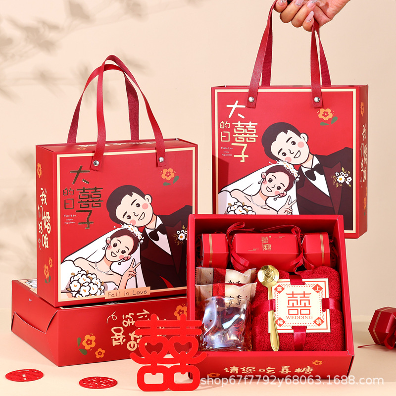 新中国式結婚喜糖箱お土産お返しギフトボックス誕生日ジョー移転大寿手提げケースおめでたい高級感箱