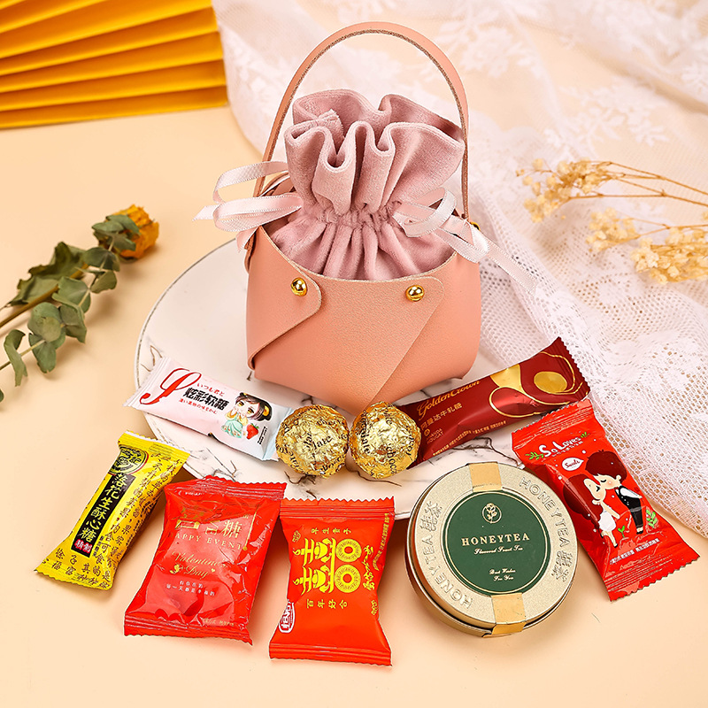 ヨーロッパ風のアイデアの小さい皮の桶の絨毯の布の皮の喜糖袋の高級な手提げの皮革の喜糖の箱の結婚祝いのお返しの現物