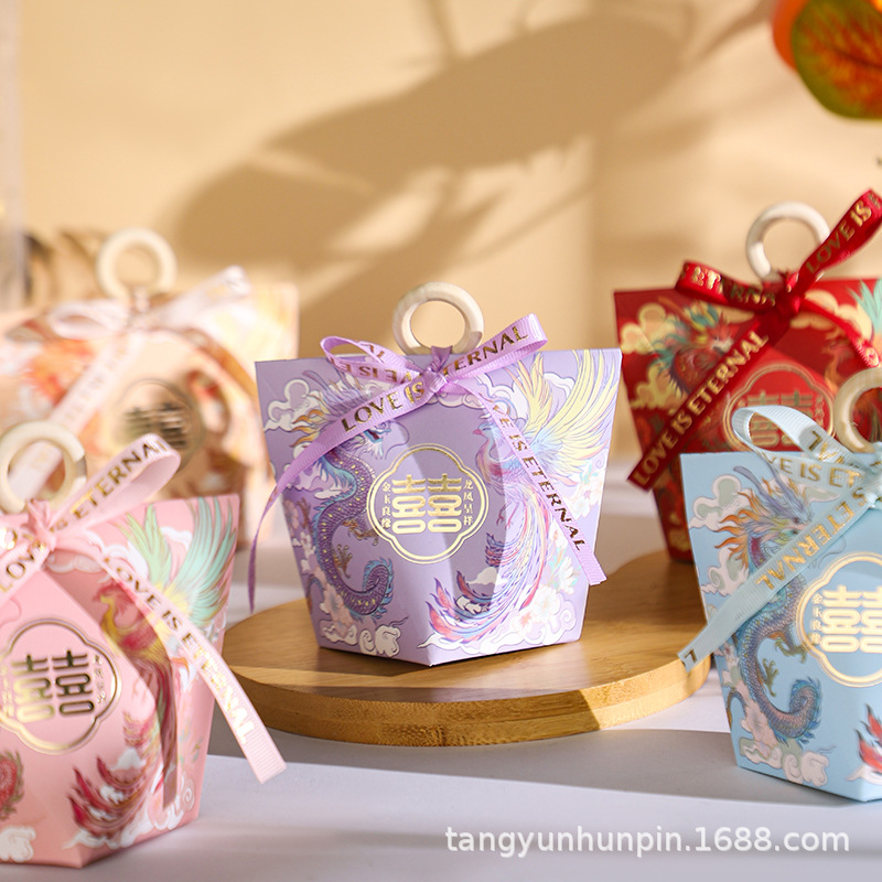 龍と鳳凰のウェディングキャンディギフトボックス新しい中国風のウェディングキャンディボックスお土産包装箱空箱ウェディングキャンディバッグ