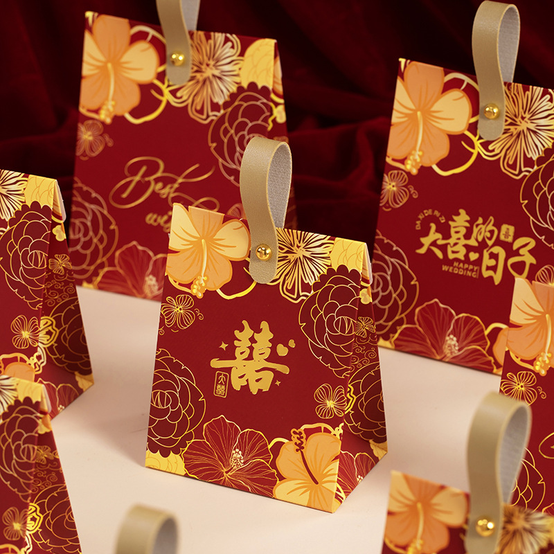 中国式手提げ喜糖袋受領証結婚喜糖箱結婚式お土産喜字糖箱小衆婚約糖箱