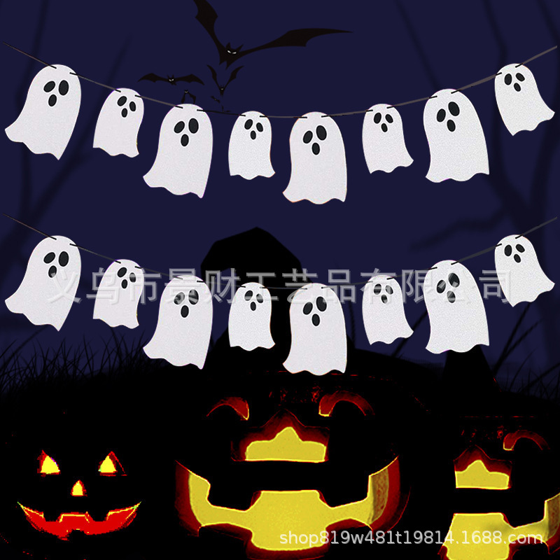 国境を越えたハロウィーンの新しい幽霊横断幕パーティーは花を引いて旗を飾ってシーンを飾る