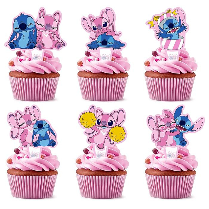 ピンクブルースティッチ誕生日デコレーションケーキ小さなインサートダンステーマスティッチケーキデコレーション