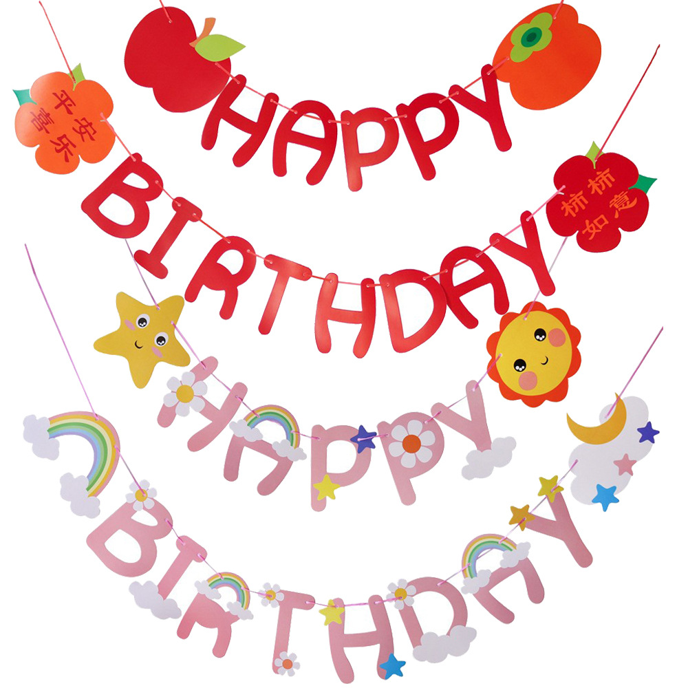 森系韓国版誕生日拉旗insカレーフェルト誕生日拉旗誕生日百日満月装飾拉旗拉花