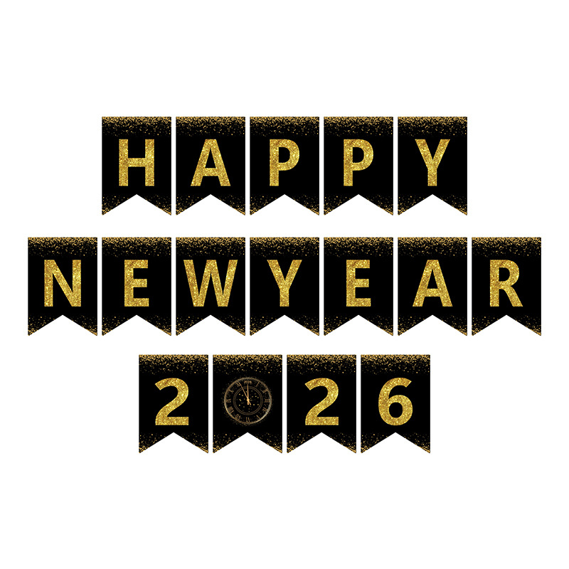 2026年越境新年バルーン ブラックゴールド 新年おめでとう飾り旗 大晦日パーティー装飾 元旦新年写真撮影用小道具