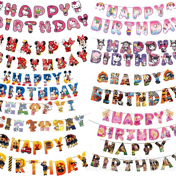 スポット漫画ステッチ誕生日文字バナー旗子供の誕生日パーティーのテーマの装飾工場直接販売