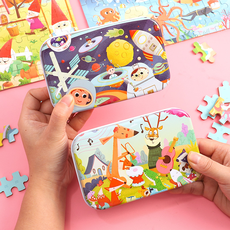 60ピース入り鉄箱入り木製パズルギフト 男の子 学生 幼稚園 小さな賞品 屋台卸売 手作り