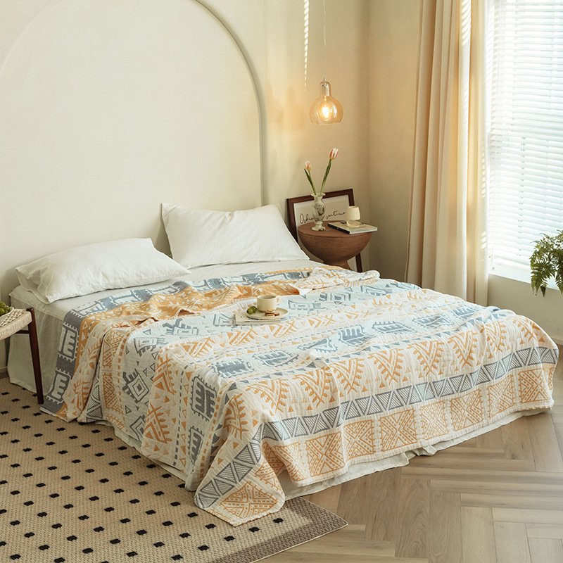 新型純綿三層タオルガーゼ一人二人の夏涼しさボヘミアン毛布ソファータオルエアコン毛布