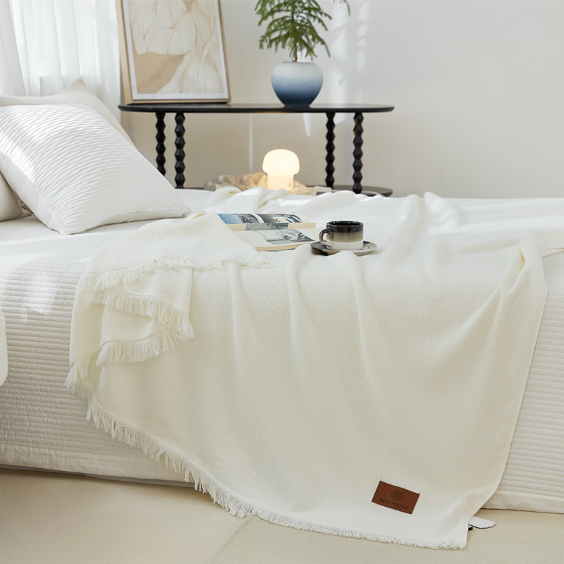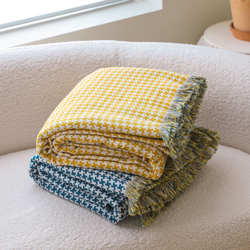 新型純綿フリンジ四重ガーゼタオルはシングル二人のエアコン毛布綿ソファータオル四季の昼休みに毛布をかぶせる