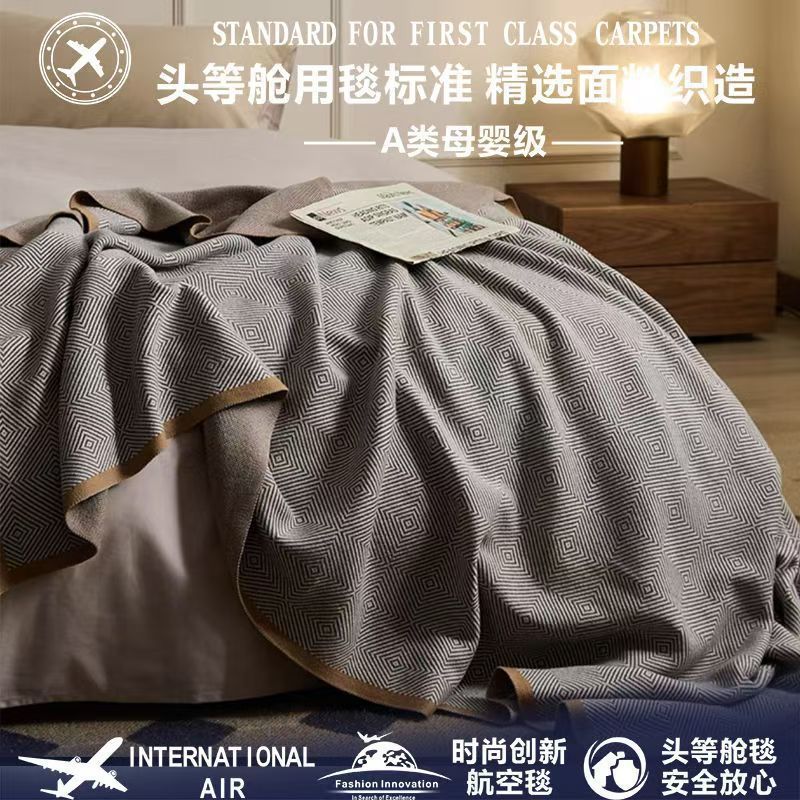 ヒルトン北欧ライト高級無地ニットシンプル両面タオルエアコンブランケット昼寝純綿航空機航空ブランケット