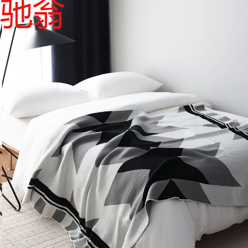 北欧シンプル風幾何学白黒灰ニット毛糸ソファーカジュアル装飾毛布エアコン毛布昼寝毛布厚い
