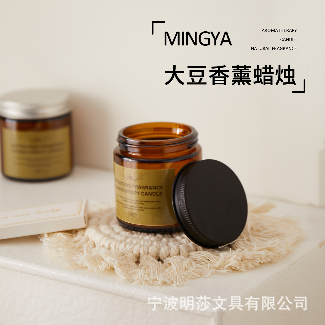 アロマセラピーキャンドル、小さな茶色のボトル、ビーンワックス、無煙、環境に優しい、さまざまな香りを選択できます、不眠症を治す、香りのホリデー