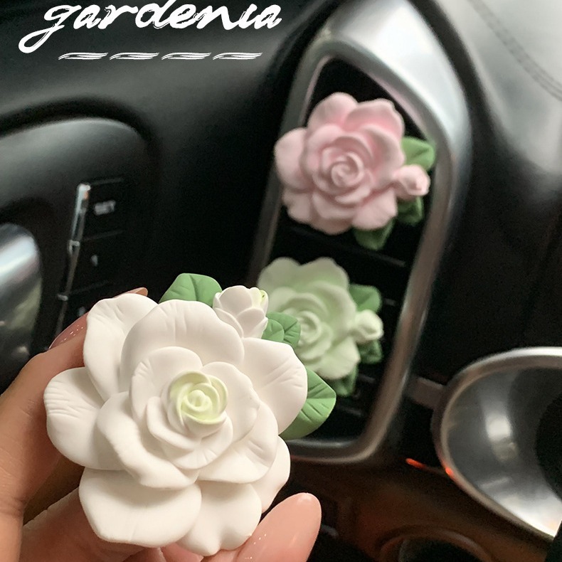车载香薰出风口饰品高级感栀子花扩香石空调出风口装饰摆件带夹子
