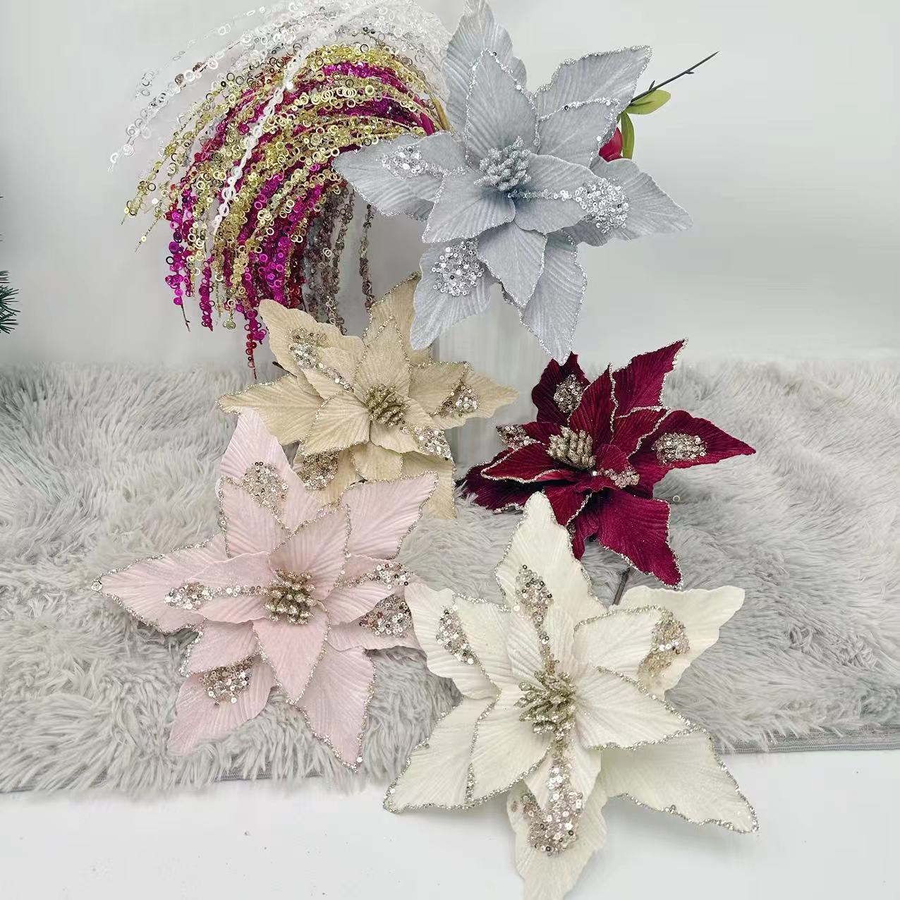 一品紅金粉クリスマス花銀クリスマスツリー装飾シミュレーション花クリスマス花輪部品金辺クリスマス造花
